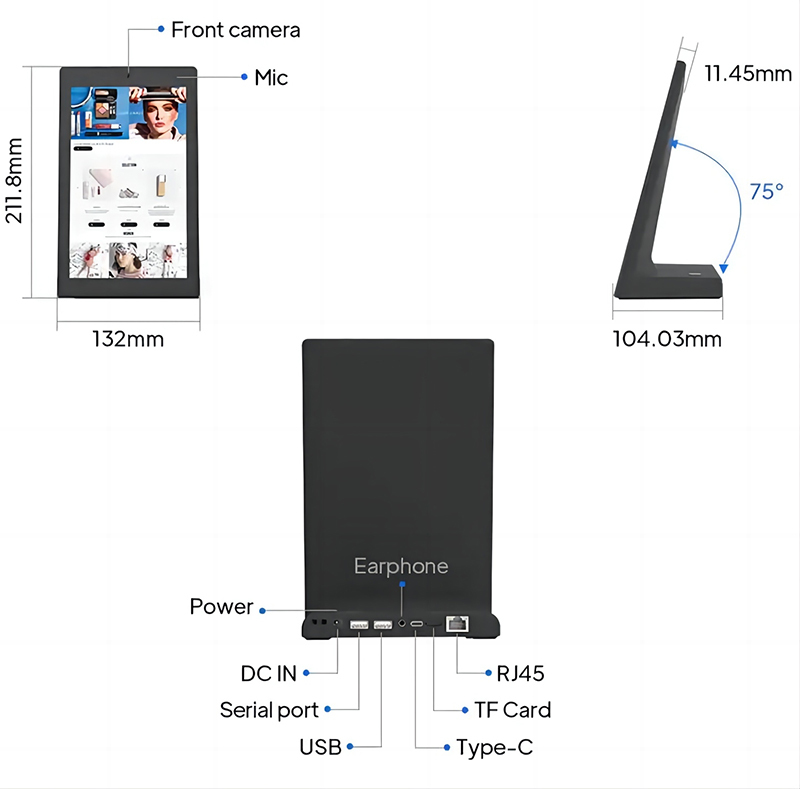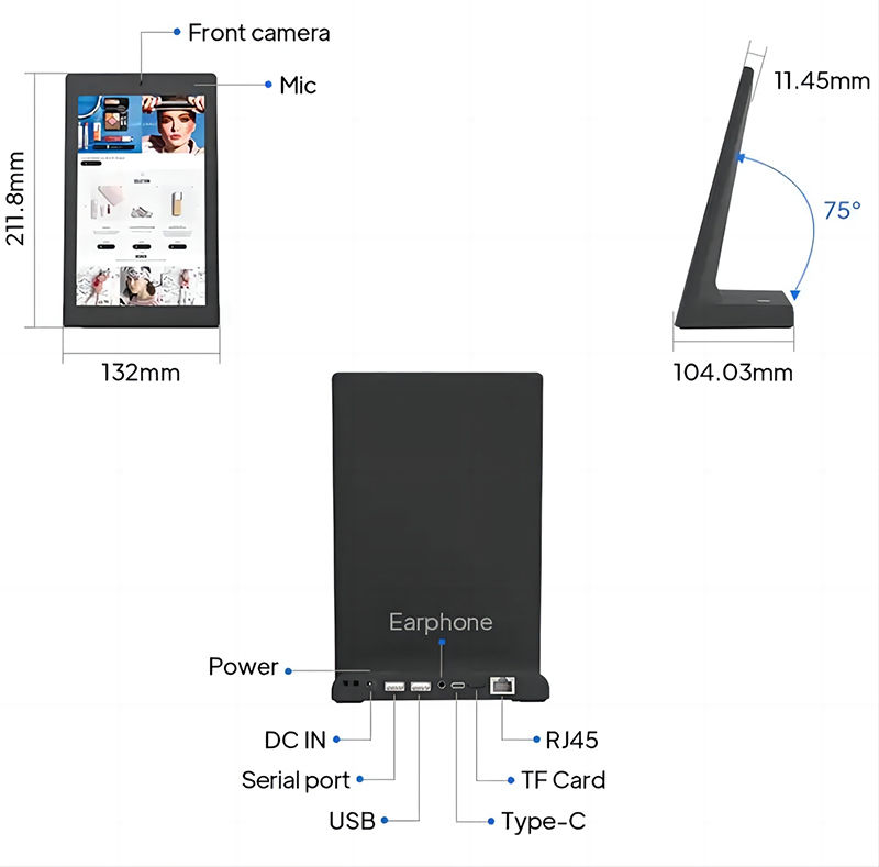 이 키오스크 스타일 안드로이드 태블릿은 공간이 제한되어 있지만 상호 작용이 빈번한 호텔 체크인 데스크, 서비스 스테이션 및 고객 접촉 지점에는 완벽하게 적합하도록 설계되었습니다.L 모양 구조는 안정적이고 우아한 모습을 제공하여 손님들이 자연스럽게 화면에 접근하고 직원의 참여없이 피드백 또는 서비스 단계를 완료 할 수 있습니다.통합 및 유통업체에 대한 이 장치는 고객 서비스 시스템 대기 관리 게스트 평가 플랫폼 및 가벼운 셀프 서비스 애플리케이션에 대한 신뢰할 수 있는 하드웨어 기반을 제공합니다.