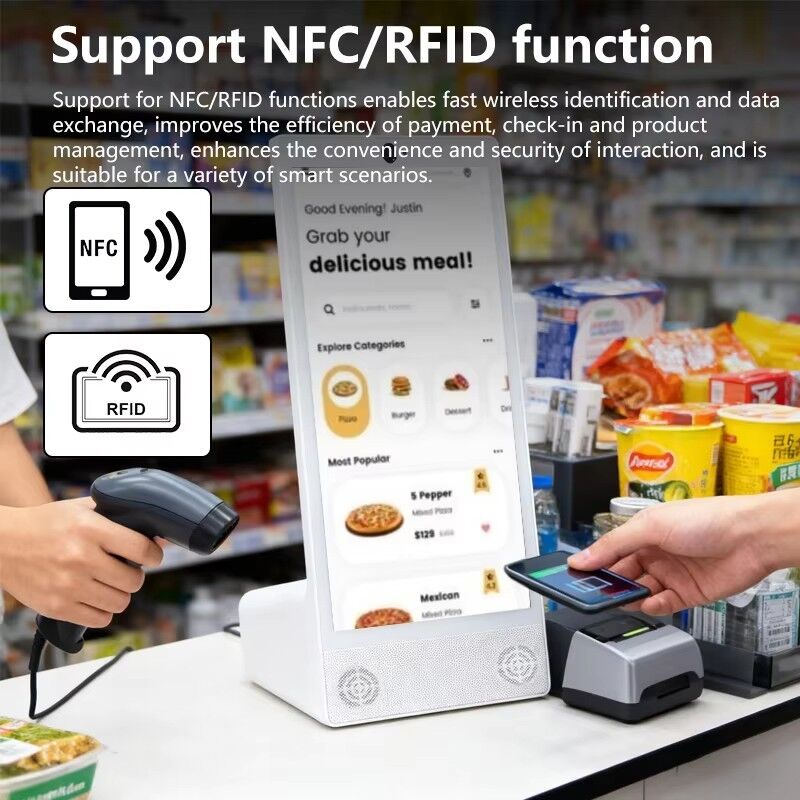 연결성은 비즈니스 터미널의 핵심 요구 사항이며, 이 안드로이드 태블릿은 이를 염두에 두고 제작되었습니다. 통합 Wi-Fi는 복잡한 배선 없이 유연한 설치를 가능하게 하며, NFC 지원은 출입 통제 시스템, 멤버십 식별, 모바일 결제 워크플로우 및 고객 인증 시나리오와의 원활한 통합을 허용합니다. 이러한 기능은 이 장치를 스마트 소매, 로열티 프로그램 및 비접촉식 서비스 환경에 적합한 선택으로 만듭니다.