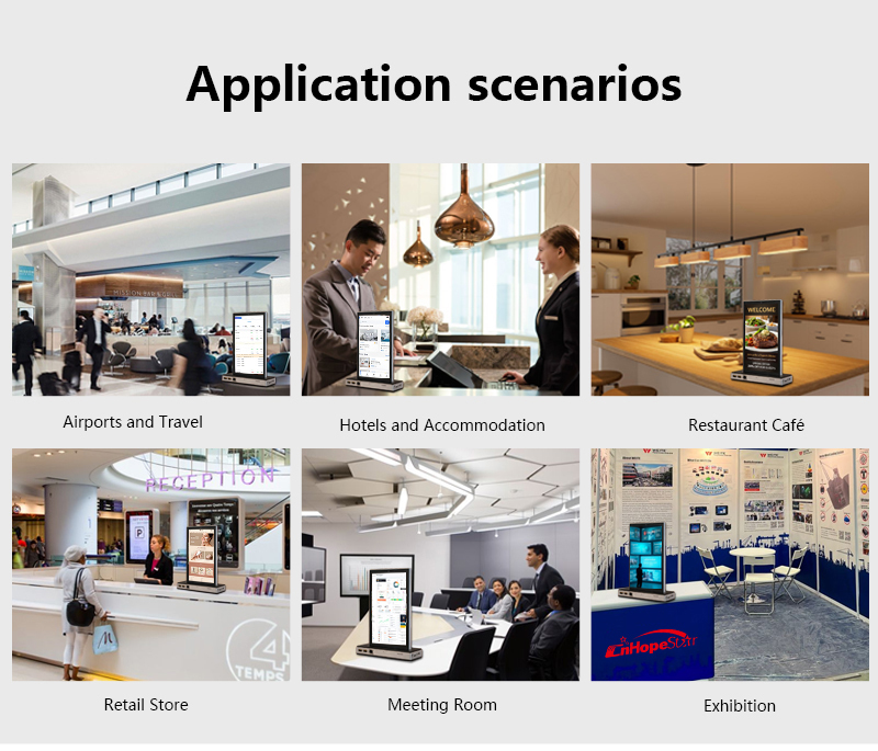 레스토랑에서는 이 장치가 셀프 서비스 주문 터미널로 기능할 수 있으며, 직원들의 작업 부하를 줄이는 동시에 주문 정확성을 향상시킵니다.제품 탐색 또는 프로모션 디스플레이 화면으로 사용할 수 있습니다., 고객들이 독자적으로 상품을 탐색할 수 있도록 합니다. 리셉션이나 고객 체크인점과 같은 서비스 시나리오에서는그것은 작업을 단순화 하는 간단하고 사용자 친화적인 인터페이스를 제공합니다.
